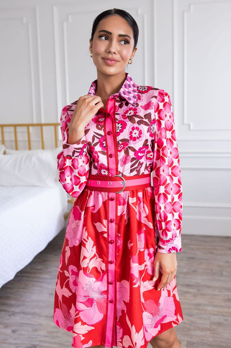 Our new Bluebell is a trendy modern take on 70's style, it's screaming perfection! Features include, collared neckline, functional button front, long sleeves, belted waistline and a lovely mid-length skirt. Grab this perfect for Summer beauty today!