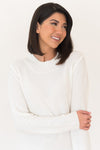 The Bonita has a very suiting name! This darling feminine sweater dress is simply darling! Featuring a wide banded round neckline, long sleeves, pencil fit and the perfect tea length.