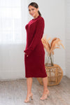 The Bonita has a very suiting name! This darling feminine sweater dress is simply beautiful! Featuring a wide banded round neckline, long sleeves, pencil fit and the perfect tea length.