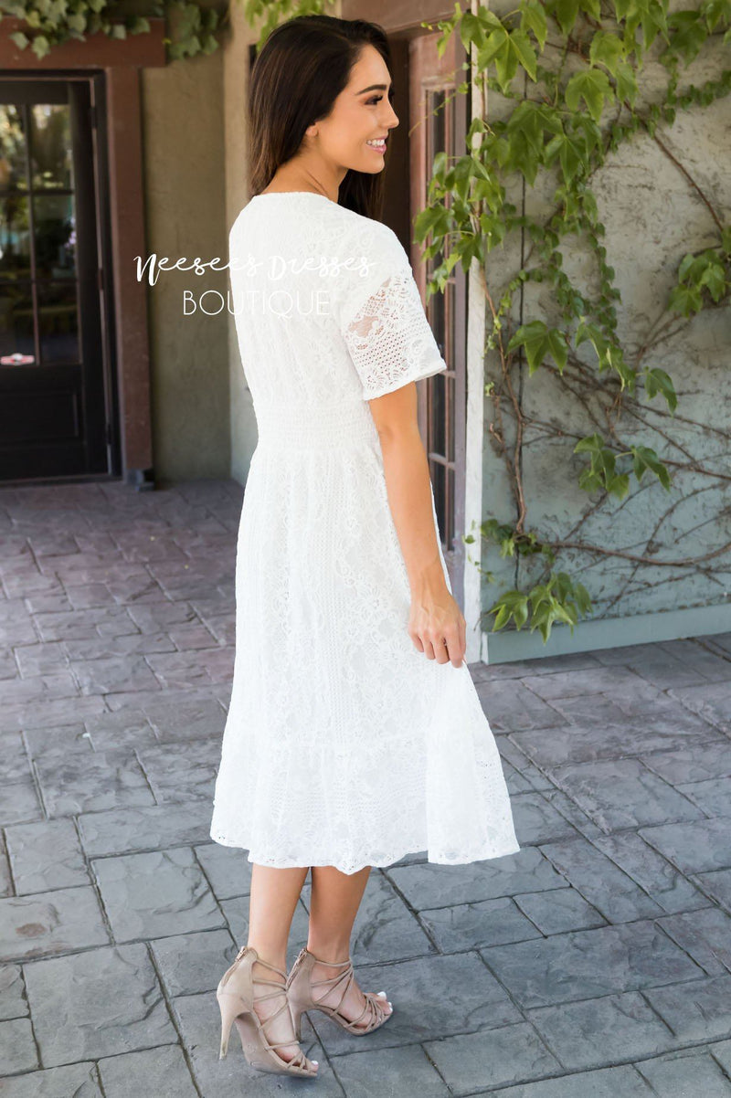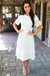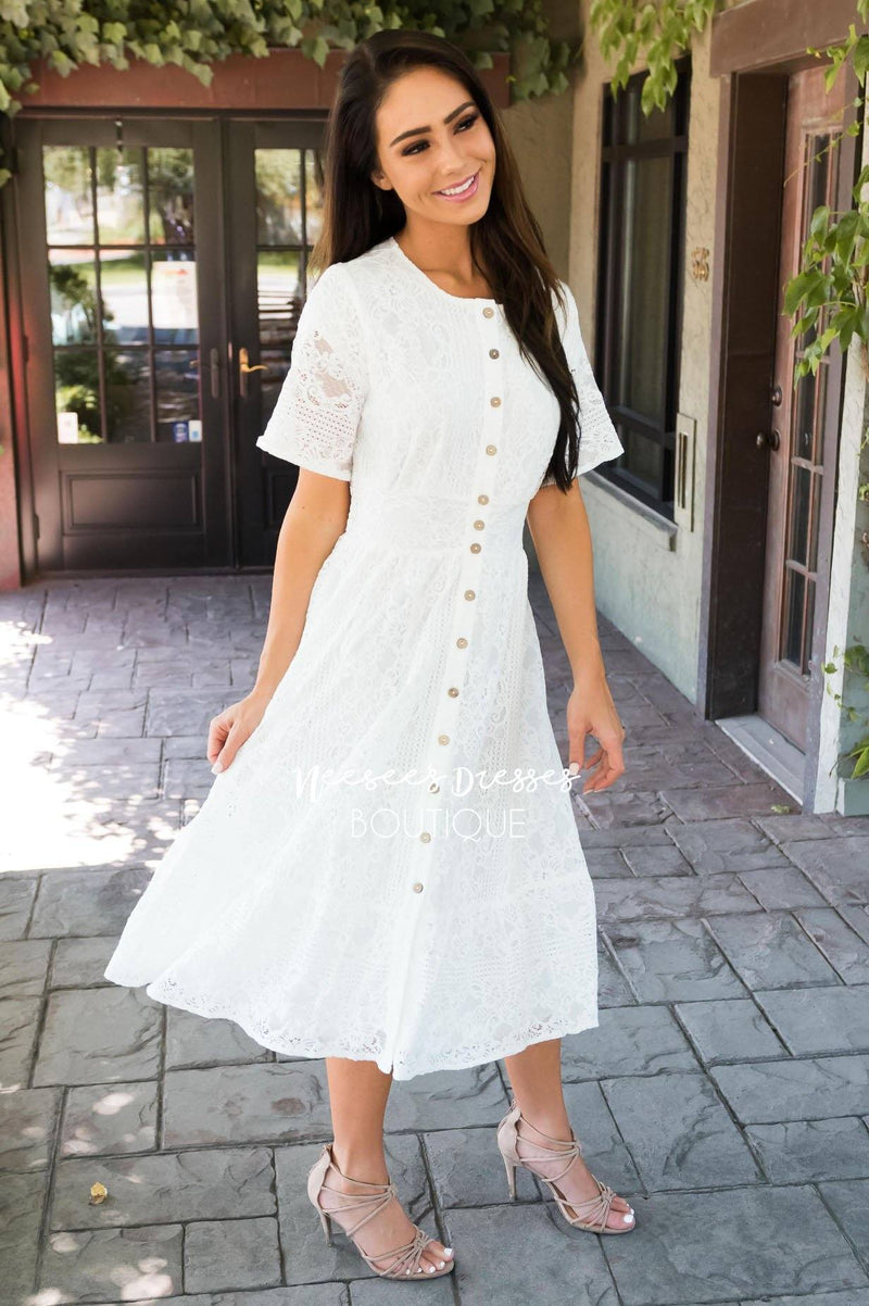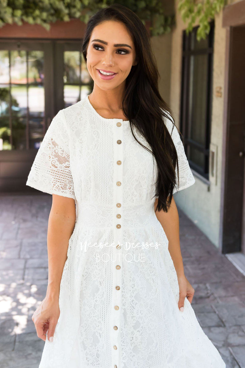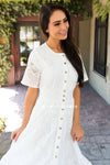 Beyond Stunning! Our Boston Dress has left us speechless! From the detailed lace, to the pretty wide band waistline, to the beautiful functional button front, this dress has it all and more.!