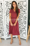 The Brandi is bound to be your new favorite go to Spring/Summer dress! Nursing friendly cross-body bodice, lovely flattering soft fitted material, short sleeves and elastic waist make this the perfect dress for everyone! Get yours today!