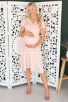 The Brandi is bound to be your new favorite go to Spring/Summer dress! Nursing friendly cross-body bodice, lovely flattering soft fitted material, short sleeves and elastic waist make this the perfect dress for everyone! Get yours today!