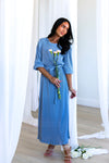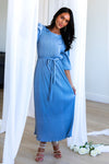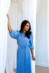 This lovely pleated fabric dress is a Spring must have! Features include a modest round neckline with button back closure, belt tie waistline, darling half length sleeves and the perfect length lettuce edge skirt! Act fast and add to cart before these beauties are gone! This unique peach color won't last long!