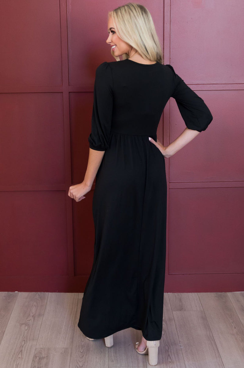 Your winter maxi dress dreams just came true! The Brandilynne has all the great features of our ever popular Brandi dress but now in a maxi and 3/4 length puff sleeves! This one is a must have and will not last long, trust us!