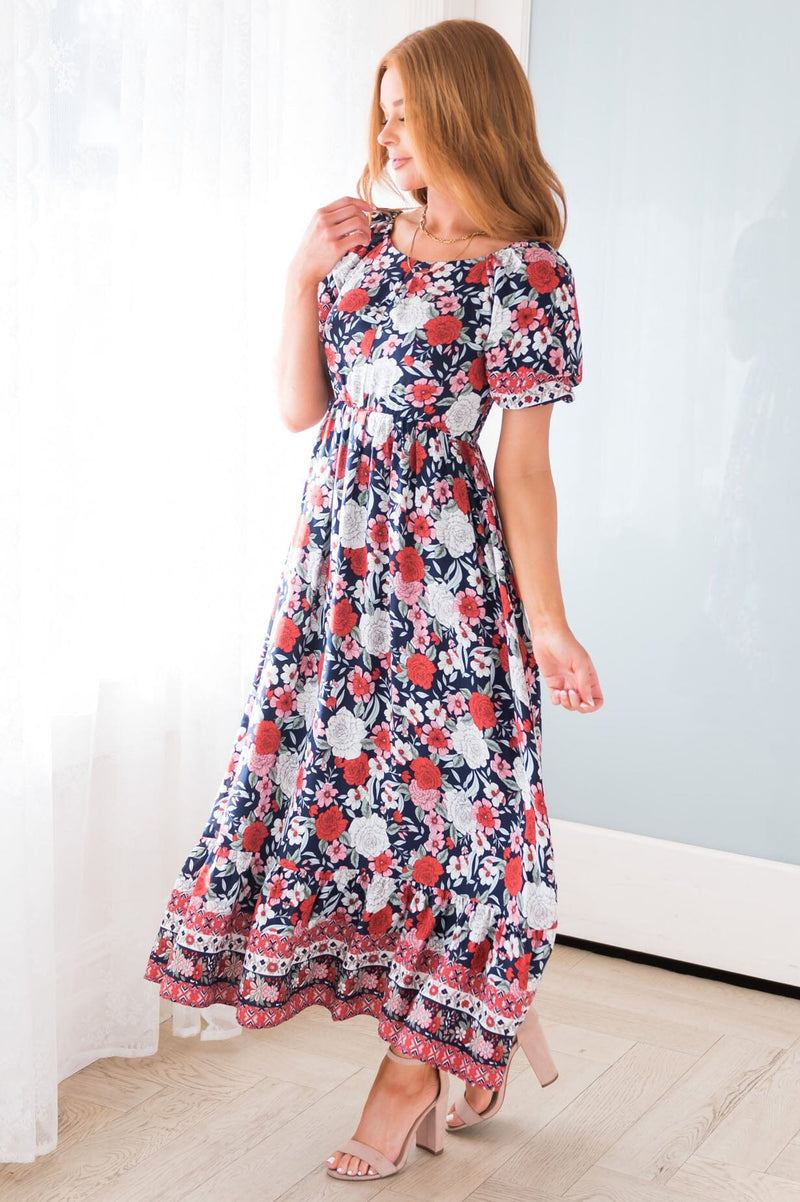 The bold boho Brea is stepping onto the scene and we are here for it! Grab this beauty before they disappear and you have regrets! We promise you will be in love with the short puff sleeves, lovely boho floral print, pockets and darling ruffled hemline maxi.