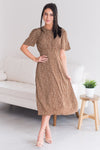 This, flowy floral beauty called the Brendita had us hooked at hello! We love the delicate ditzy floral print, short sleeves, banded shirred waistline, high modest round neckline and perfect modest length skirt. Trust us, this beauty is must have for every wardrobe!