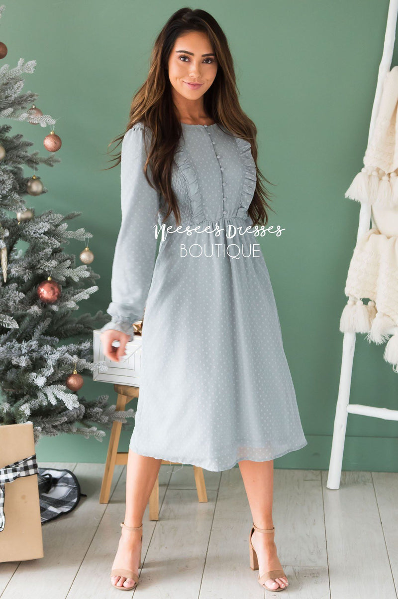The New Brenlee is the idyllic dress for you! Soft and flowy textured swiss dots throughout, fully lined, long puff sleeves, and the loveliest feminine button ruffle bodice. Truly the perfect dress for any outing and any occasion!