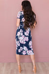 Navy and blush floral, The Briella is going to be one you don't want to miss out on! The elegant tie waist, petal style skirt, and the modest cap sleeves will have you hooked! We know this fabulous soft material is perfect for summer!