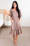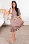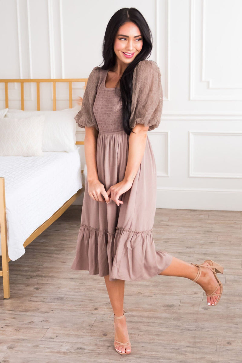 The Brindee is a true classic beauty made even more beautiful with a stylish pop! The gorgeous lace puff sleeves have us hooked! We are also loving the smocked bodice, flattering fit and flowy ruffle hem skirt. Get yours today!