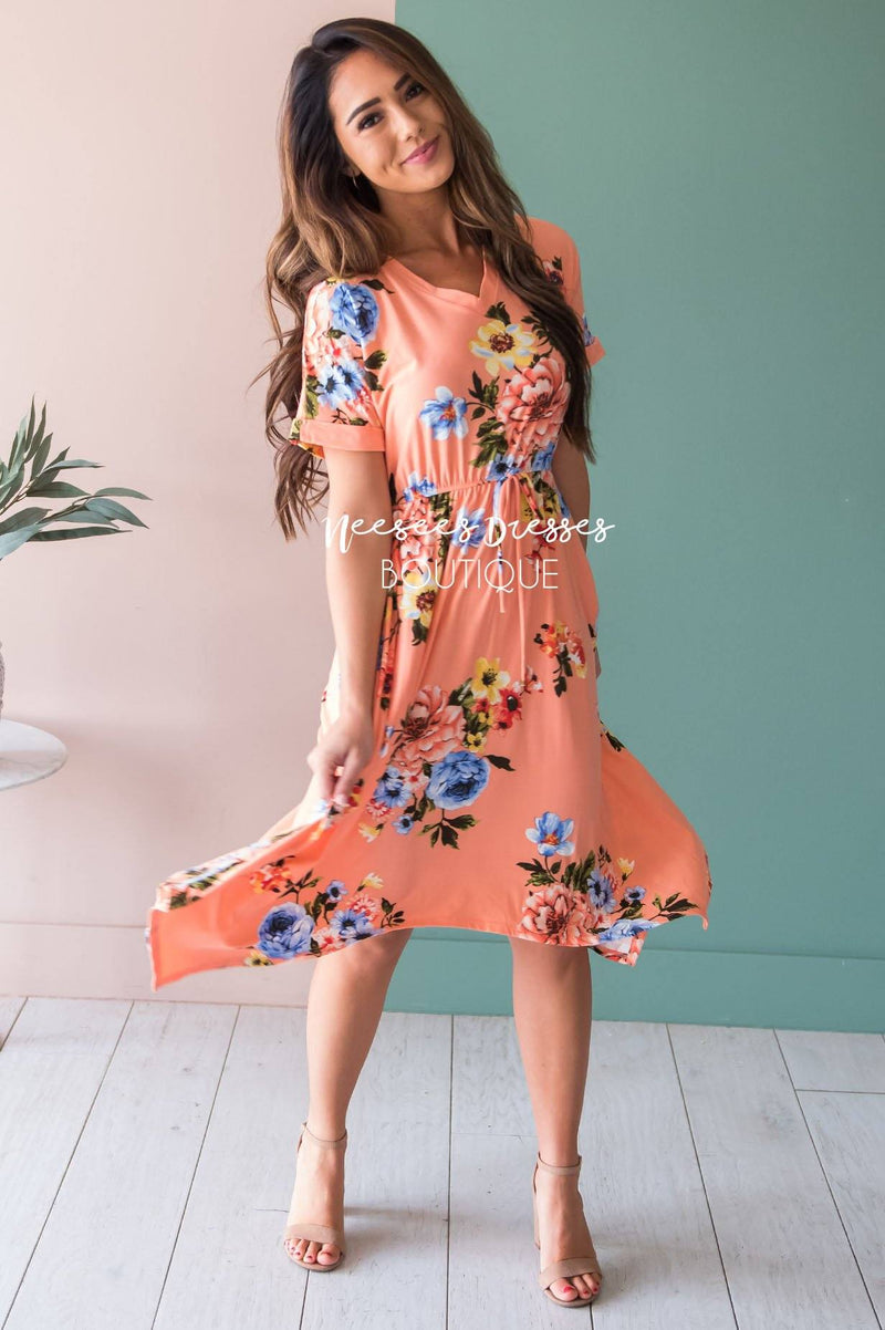 We are absolutely in love with our gorgeous floral Brisa dress! This handkerchief dress is going to give everyone a flattering silhouette. Sophisticated, Functional and Fun! This dress features a round neckline and short sleeves and elastic drawstring waist. You are going to need this piece added to your dress collection!