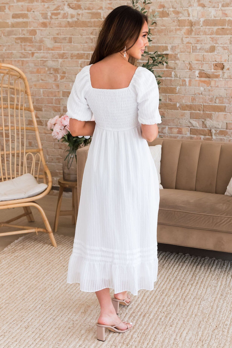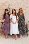 Twirling into the gorgeous Spring weather with the new Bronte dress is a dream! Features include short puff sleeves, our favorite sweetheart neckline, perfect flowy ruffle detailed skirt. This dress is so dreamy, it's a true must have.