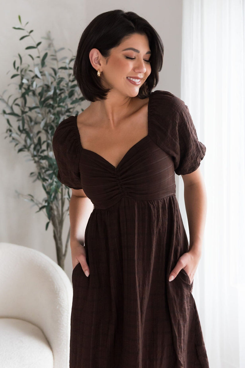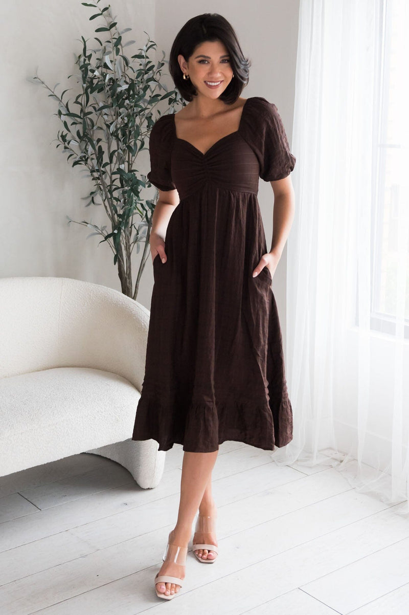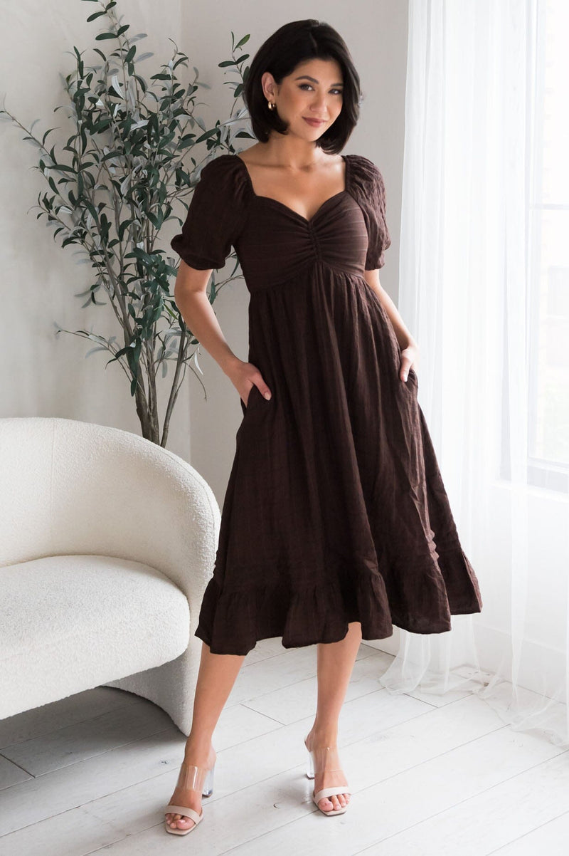 Twirling into the gorgeous Fall weather with the new Bronte dress is a dream! Features include short puff sleeves, our favorite sweetheart neckline, perfect flowy ruffle detailed skirt. This dress is so dreamy, it's a true must have.