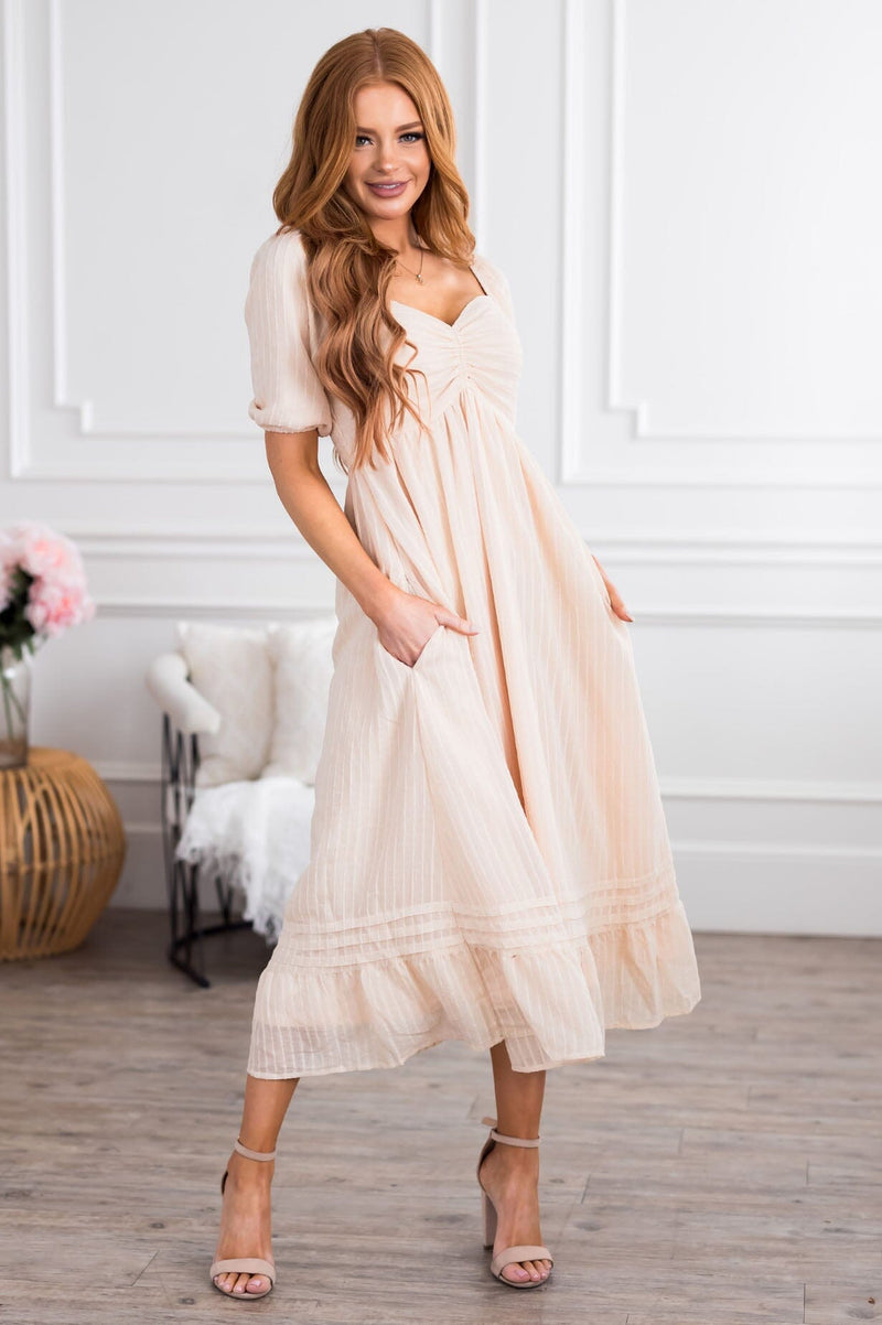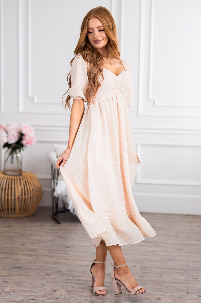 Twirling into the gorgeous Spring weather with the new Bronte dress is a dream! Features include short puff sleeves, our favorite sweetheart neckline, perfect flowy ruffle detailed skirt. This dress is so dreamy, it's a true must have.