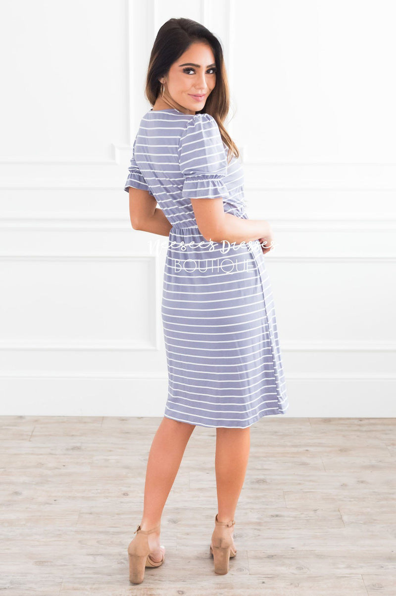 This gorgeous wrap dress is just what you have been looking for! From the small ruffle sleeves to the buttery soft material to the side tie detail. We are loving the faux wrap neckline, making it perfect for all the nursing mommas out there. You won't want to miss this one being in your closet!