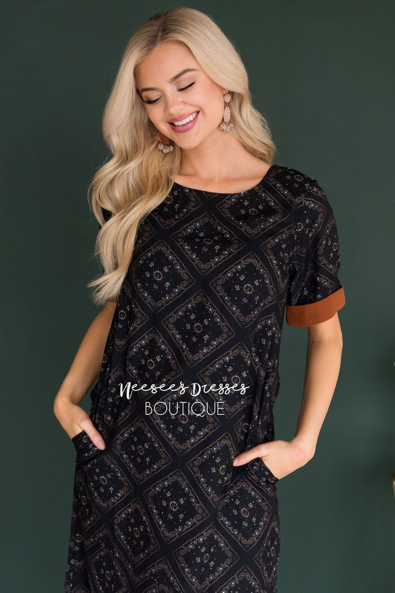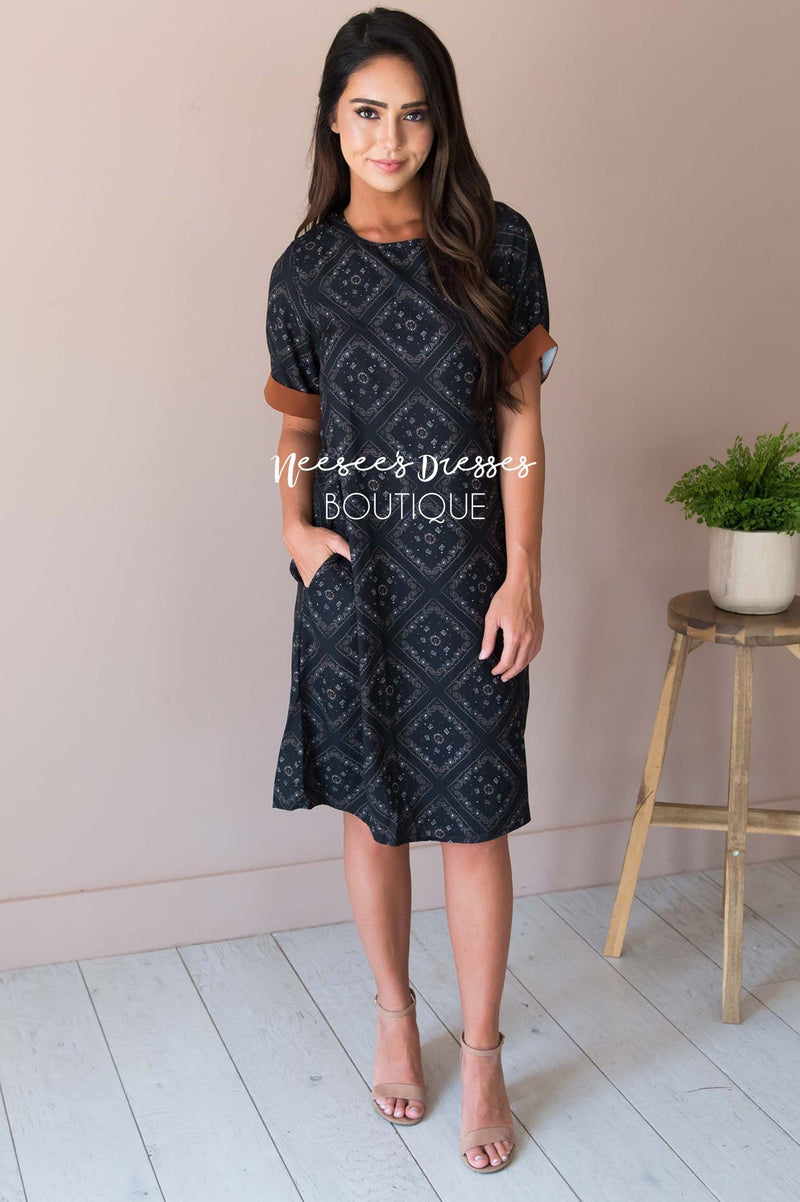 WOW! The Sandi is the dress we never knew we needed. This adorable midi features a round neckline, adorable cuffed short sleeves, a keyhole back detail, and the cutest geo print ever! You will not want to wait to purchase this dress, we bet we wont have it long!