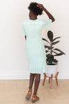 This darling modest dress is going to be your next go-to piece! The Bryonny has some lovely modest features to include. Gorgeous eyelet fabric, a modest round neckline with faux button detailing on the bodice, fitted half ruffle sleeves, elastic waist, a flowy ruffle skirt in the perfect length! This one is a must have!