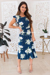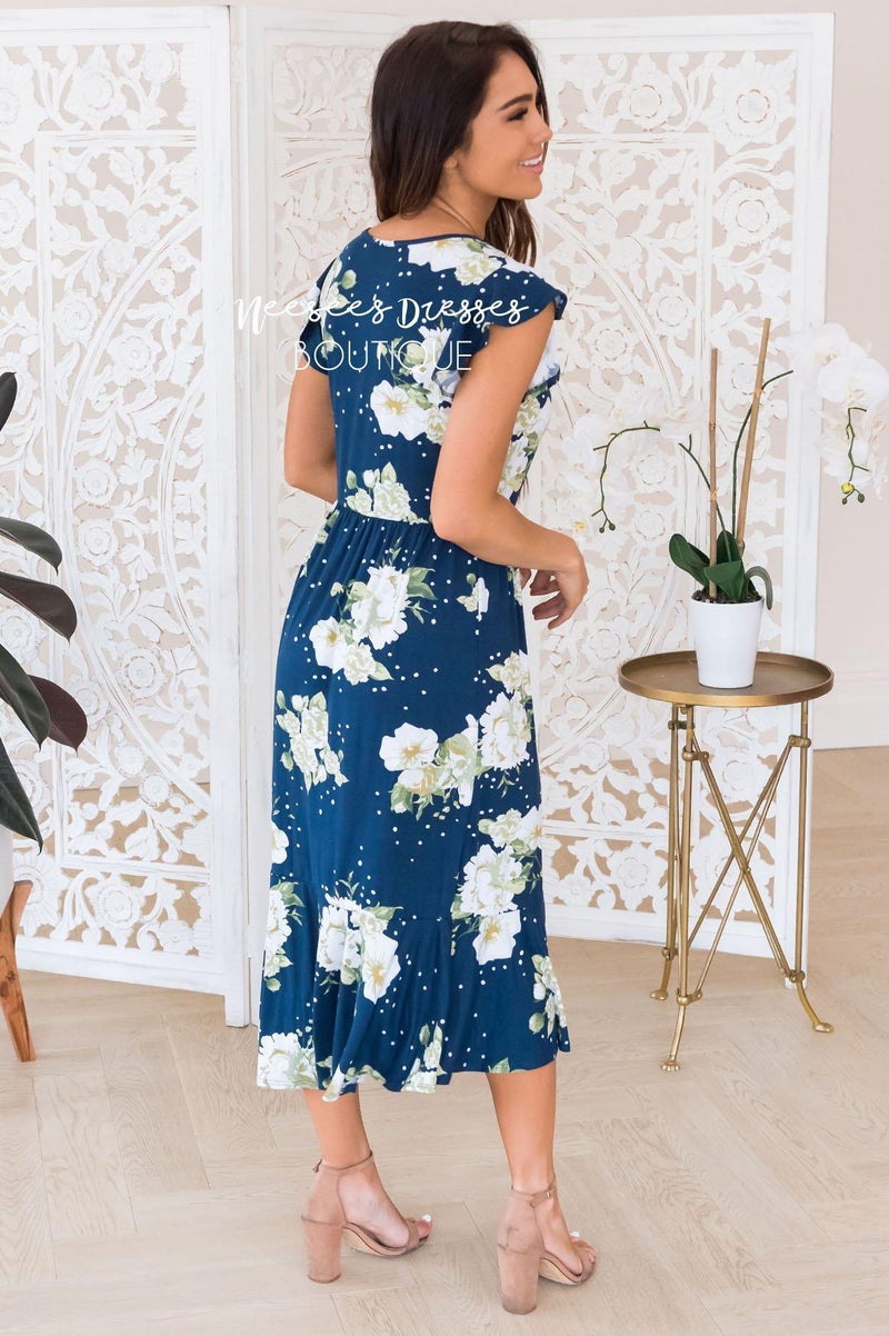 The Cabbie Modest ruffle dress has arrived for every single one of you spring and summertime events! This cozy yet classy little gem has all the best features, to include, short ruffle sleeves, darling polka dot floral pattern, empire waist and our favorite ever ruffle hemline! Get yours today!