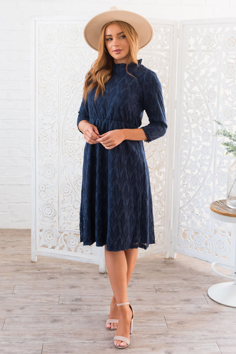 The Calah is the perfect spring all occasion dress! Whatever is on your agenda, the Calah will fit the event! Church, Weddings, Easter you name it! Featuring a high modest ruffle neckline, back button keyhole closure, darling lace trim detailing on the shoulders. Long sleeves, elastic waist and a fully lined skirt. Get yours before it's gone!