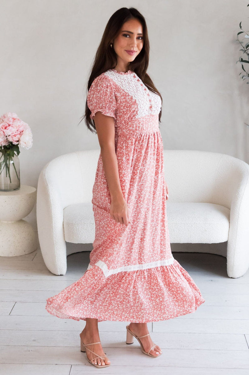Say hello to the cutest dress you will want to wear the entire season of Fall and beyond! The Calliope features short puff sleeves, a classy crochet lace detailed button front bodice, banded waistline, feminine ruffled details and a flowy crochet lace ruffle hem skirt. Get yours today!