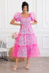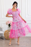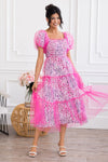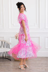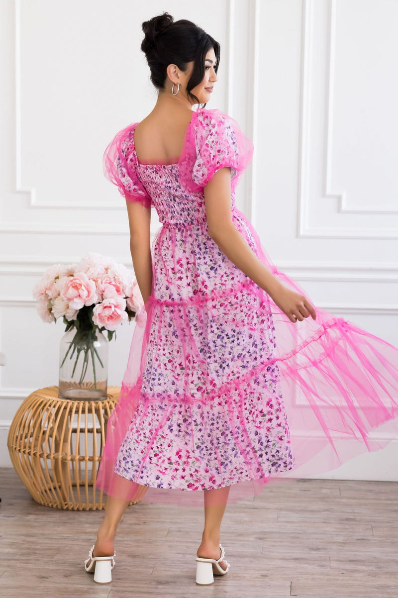 The Carla is the dress dreams are made of! This lovely delicate tulle dress is the special occasion dress everyone needs in their wardrobe! Featuring a gorgeous ruffled round neckline paired with a flattering smocked bodice, classy tulle puff sleeves and a flowy feminine tiered tulle skirt. The outer layer on this dress is tulle, while the lining is a gorgeous floral. It is such a style forward style, we can't wait to see you in it!