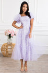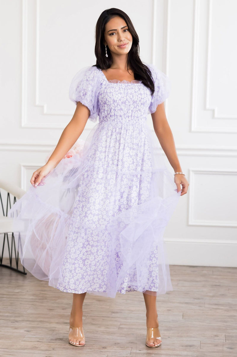 The Carla is the dress dreams are made of! This lovely delicate tulle dress is the special occasion dress everyone needs in their wardrobe! Featuring a gorgeous ruffled round neckline paired with a flattering smocked bodice, classy tulle puff sleeves and a flowy feminine tiered tulle skirt. The outer layer on this dress is tulle, while the lining is a gorgeous floral. It is such a style forward style, we can't wait to see you in it!