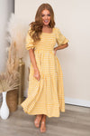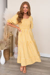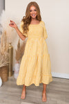 The Caryn is a showstopper! This lovely feminine style of this beauty has stolen our hearts and the show as you can easily see! Features include, gorgeous squared neckline, half length ruffled puff sleeves, and the ever so lovely tiered maxi skirt. Get yours before these gems are gone!