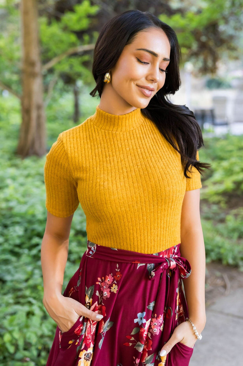 The new Caydence is the perfect style, fit and feel! Trust us, you are going to want this super soft, cozy and on trend dress! We are loving the modest round neckline, fitted short sleeves in a ribbed bodice material. It pairs perfectly with the floral print skirt. This dress also features the ever popular belt tie waist and pockets. Get yours today!