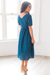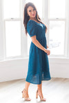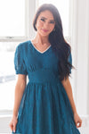 The most elegant dress just caught our eye and we guarantee it will catch yours as well! Featuring the most uniquely gorgeous peacock blue color, textured fabric, short puff sleeves and stunning faux pearl detailing around the neckline, you simply can not go wrong with this one! Click add to cart now!