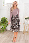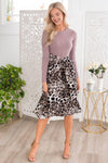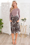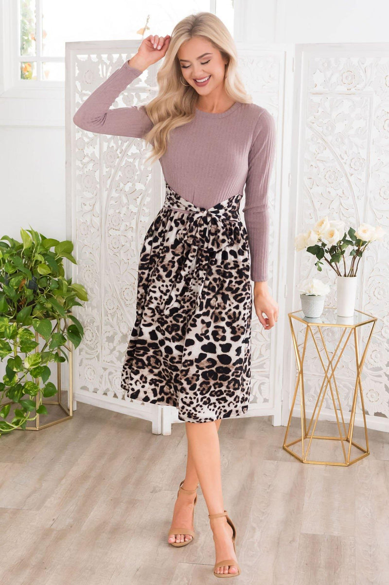 The new Chanda is the perfect style, fit and feel! Trust us, you are going to want this super soft, cozy and on trend dress! We are loving the modest round neckline, fitted long sleeves the ribbed bodice material. It pairs perfectly with the leopard print skirt. This dress also features the ever popular belt tie waist and pockets. Get yours today!