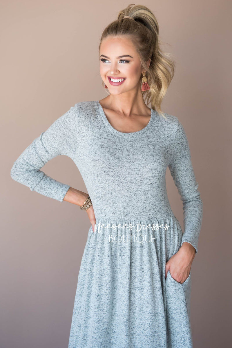 The sweater dress of your dreams is here and ready to make all your dreams come true! You will ever complain about this one being uncomfortable. This super soft dress features a round neckline, long sleeves, elastic waistband and pockets! Maxi dresses are perfect for this up coming season!