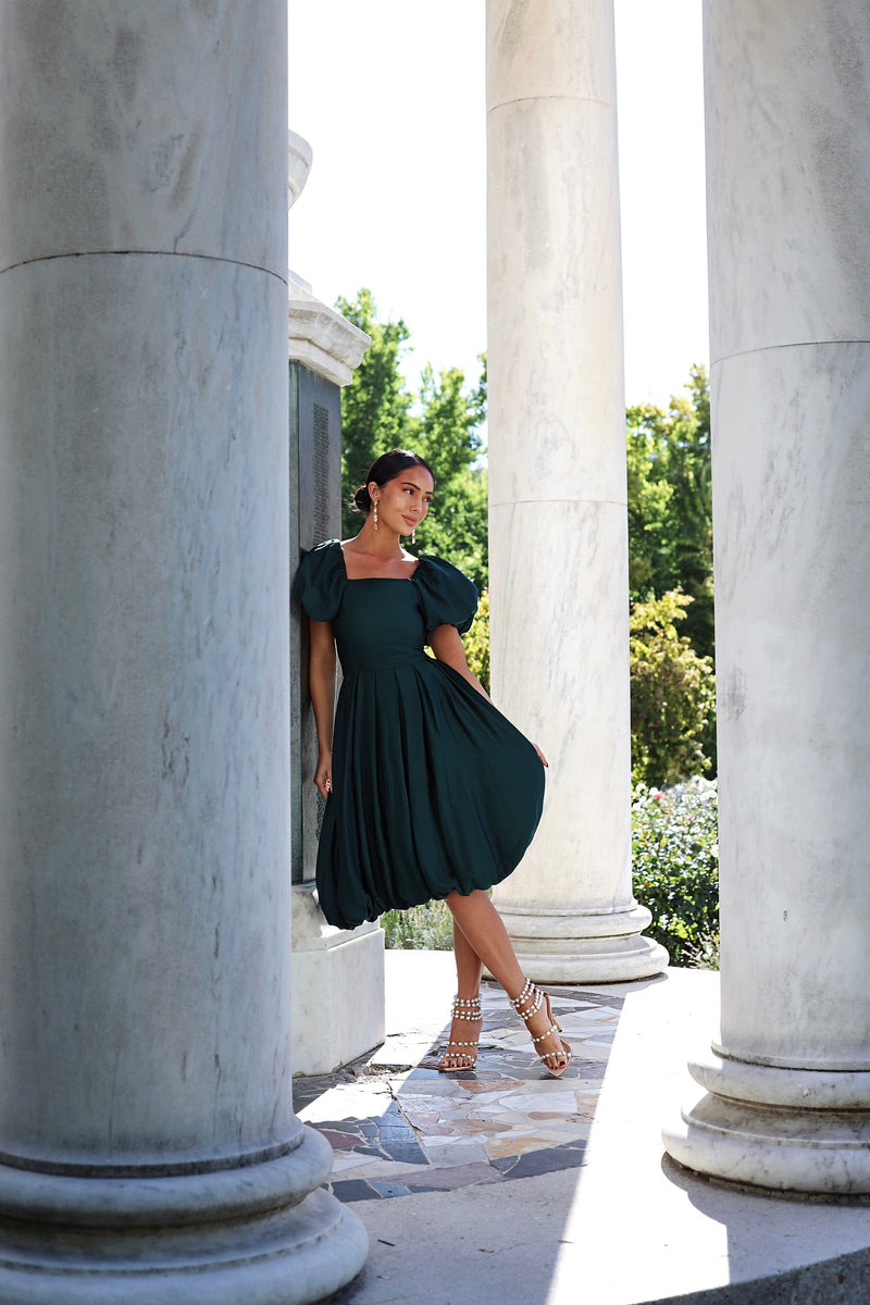 The precious as can be Chanel is your next must have! This ready for anything dress has all the stylish on trend features to include, a modest squared neckline, short bubble sleeves, flattering to all style and a gorgeous bubble hem skirt. Get yours today for all of your holiday events!