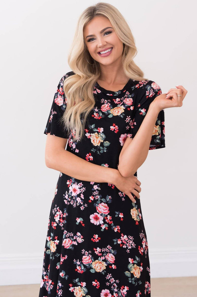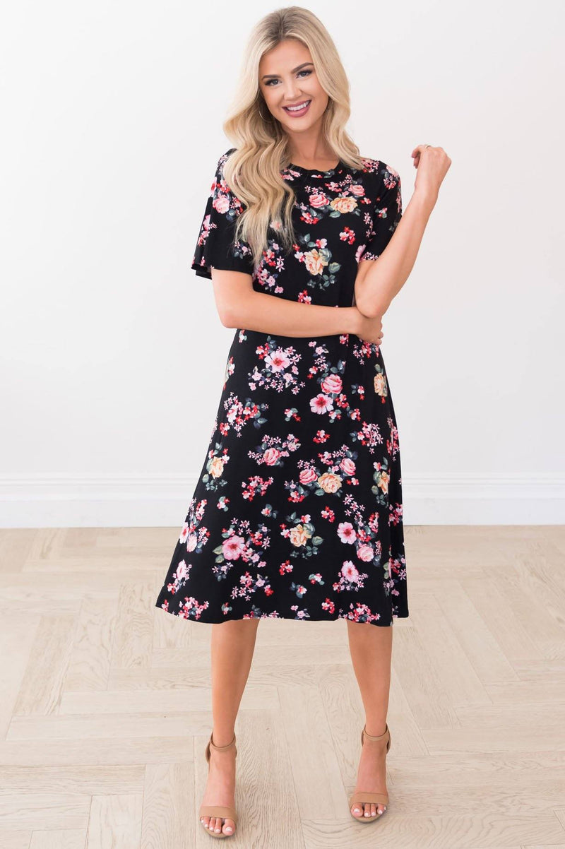 We are loving this comfy new swing dress! This piece is going to be perfect year round and makes the perfect piece to accessorize. The Channa features a modest round neckline, super soft material, short sleeves and the ever popular and stylish swing style skirt! Everyone needs that perfect piece for layering or to wear solo, to be apart of their wardrobe!