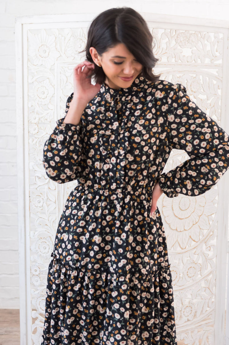 The darling Cherlene is the absolute perfect dress! This lovely floral has all the best features! Including flowy tiered maxi skirt, long sleeves and a functional button front bodice. This nursing friendly beauty is a must have, get yours today!