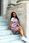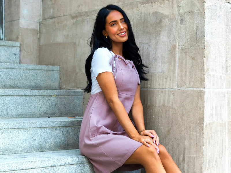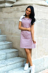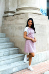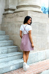 Time to grab this adorable overall dress and your favorite tennis shoes and take the day on by storm! This adorable little jumper style is comfortable, stylish and oh so cute! Featuring tie straps, from pockets and adorable elastic backing.