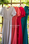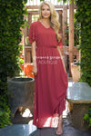 Elegant, classy and oh-so-beautiful! Our timeless chiffon Chloe Maxi Dress is the most elegant shade of hibiscus mauve, it features an elastic waist, soft v neckline, and gorgeous tiered sleeves! Fully lined. You will for sure be the center of attention in this pretty little number!