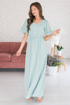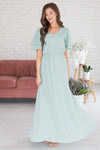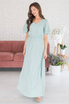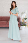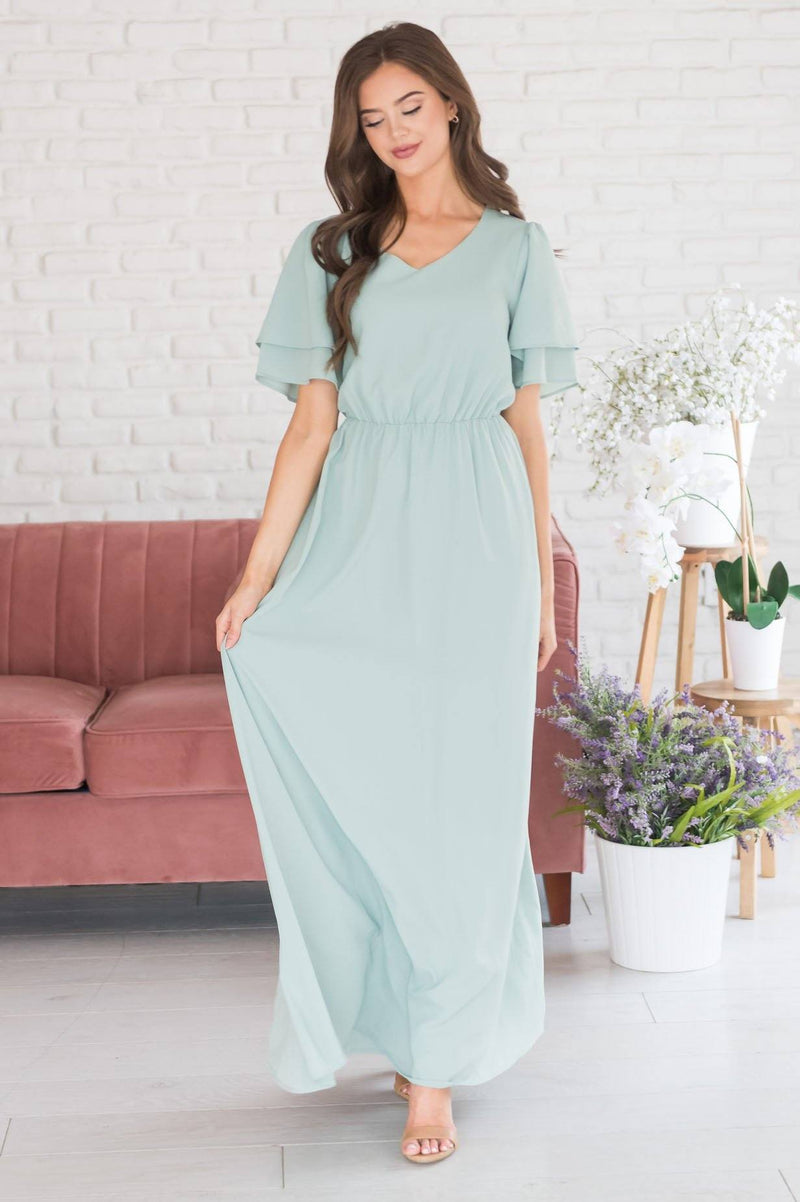Elegant, classy and oh-so-beautiful! Our timeless Chloe Dress is now in a textured fabric & beautiful new mint color. It features an elastic waistband, soft V neckline, and gorgeous tiered fluttery sleeves. Wear it to Sunday Church, or add a flower crown or belt for the perfect bridesmaids dress!