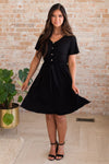 The darling Chloey is here to take you into Fall and then every season to follow! Featuring adorable faux button front detailing, short sleeves, elastic tie detail waistline and the perfect length skirt. This dress is perfect just by itself or paired with your favorite jackets and sweaters!