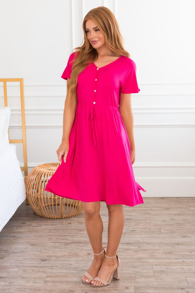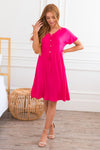 The darling Chloey is here to take you into Fall and then every season to follow! Featuring adorable faux button front detailing, short sleeves, elastic tie detail waistline and the perfect length skirt. This dress is perfect just by itself or paired with your favorite jackets and sweaters!