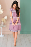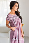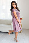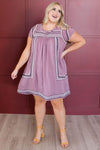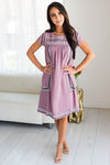 This is one of those dresses that will having people want to come in closer to take a look at all the gorgeous details. The color scheme of this dress is truly breathtaking! The pops of white and navy embroidery on top of the sage dusty lavender base is so eye catching. It features a round neckline, button keyhole back detail, is fully lined and it has pockets! Everyone needs a gorgeous embroidery dress hanging in their closet.