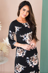 We are absolutely in love with our gorgeous floral Chrysta dress! This lovely dress is going to give everyone a flattering silhouette. Sophisticated, Functional and Fun! This dress features a round neckline and adorable 3/4 length sleeves with a slight bell. You are going to need this piece added to your dress collection!