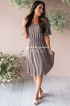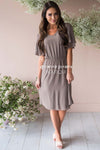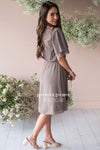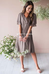 Elegant, classy and oh-so-beautiful! Our timeless chiffon Claire Dress is a beautiful shade of mocha. It features an elastic waistband, soft V neckline, and gorgeous tiered fluttery sleeves. Wear it to Sunday Church, or add a flower crown or belt for the perfect bridesmaids dress!