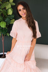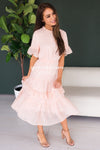 The New Clarice is the idyllic dress for you! Soft and flowy tiered ruffle skirt, textured swiss dots throughout, fully lined, short ruffle sleeves, belt tie and keyhole button closure. Truly the perfect dress for any outing and any occasion!