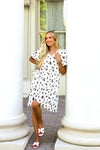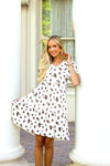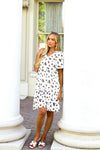This darling knee length dress has stolen the show! We are so in love with its simplistic comfortable yet super elegant style! Featuring a soft v-neckline, short sleeves and tiered skirt. These won't last long so be sure to get yours today!
