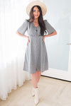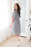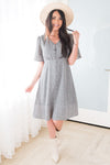 This darling floral midi dress is so pretty and feminine! We are loving the modest v-neckline, gorgeous grey color, dainty rust and ivory floral throughout, half-length flowy sleeves, and adorable buttons up the whole dress that make this beauty nursing-friendly! Get yours today because these beauties will go fast!