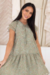 The flowy Cody is perfect from top to bottom! We adore this gorgeous sage meadow paisley, modest v-neckline with tie detail, short double flutter sleeves, easy slip on style and a ruffle mid-length skirt! This darling dress is seriously perfect for any season, grab yours today!