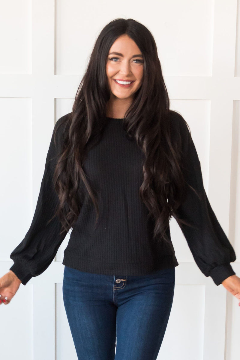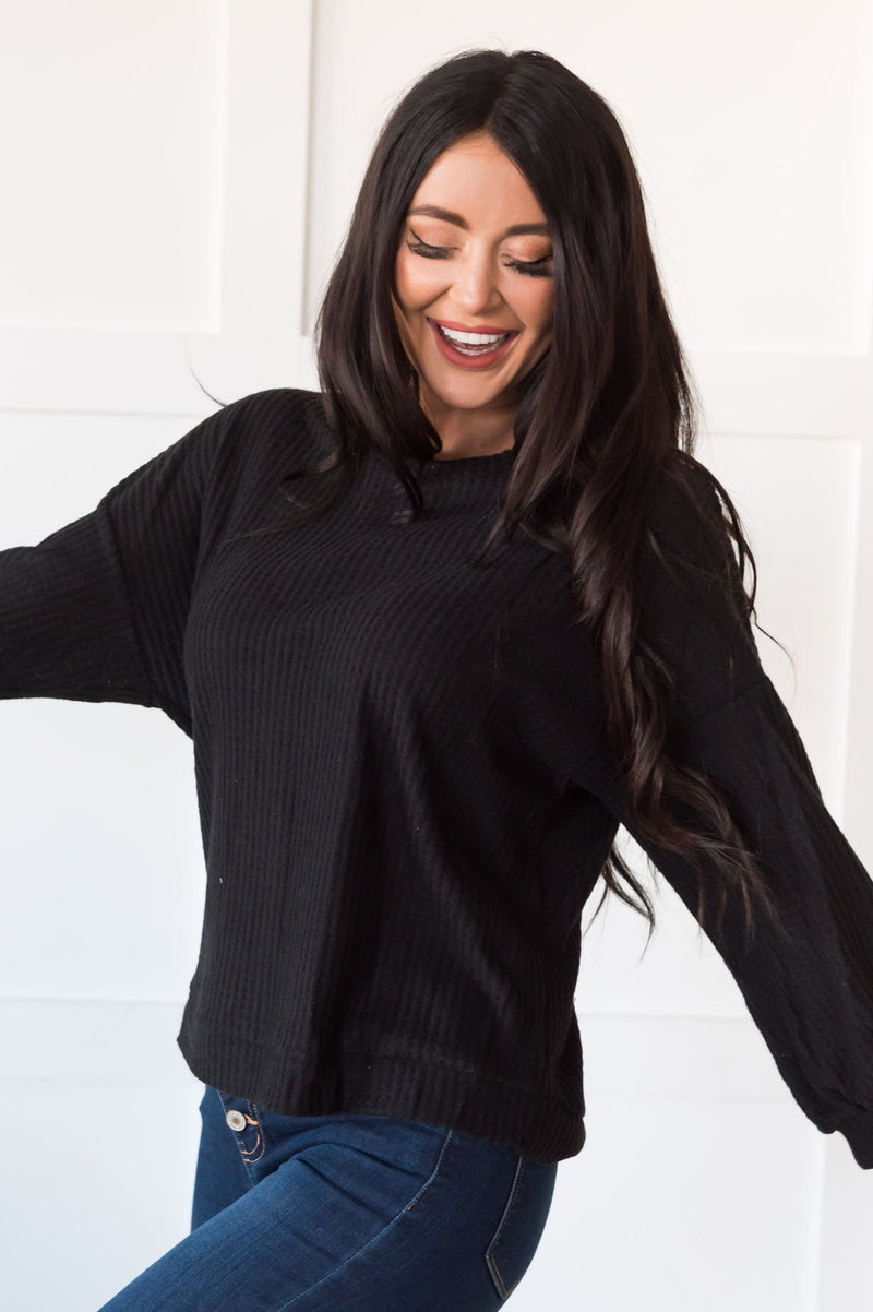 The Cozy & Chill Modest Sweater is the perfect sweater for the cold weather!! The beautiful black color, waffle knit texture, long sleeves, and cuffed sleeves we simply can not get enough of! Make sure to get yours today!