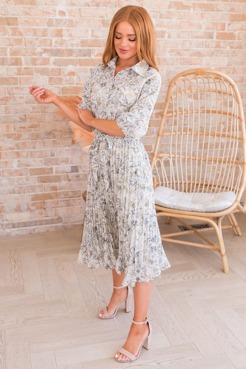 The new Cryshel screams elegance! We are so in love with the half length puff sleeves, flattering collared neckline with functional button front bodice, belt tie waistline & stunning pleated skirt. We simply can not get enough! Act fast and snag yours before these are gone!