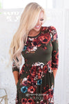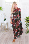 We have the perfect maxi for day-to-day wear and plus who could resist a gorgeous floral print like this?! The material is so lightweight and buttery soft against your skin. It features a round neckline, elastic waistband, 3/4 length sleeves and it has pockets. Hurry and add to your cart while we still have this in stock!