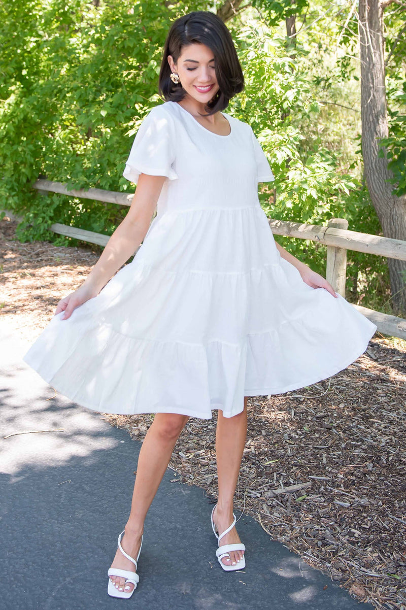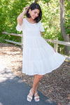 We are so excited about The Dahlia! This dress is so perfect for any occasion! We love the modest round neckline, flowy short sleeves, gorgeous textured material and the fully lined skirt! You will love the Dahlia, get yours today!