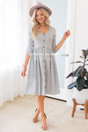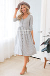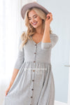 The Danette has the most darling soft stretchy fabric, it literally goes with anything, pair this beauty with all of your favorite accessories! We can not get over the stripes paired with the faux button detailing down the front. Also featuring a v-neckline, elastic waist & 3/4 length sleeves. Get yours today before they disappear!